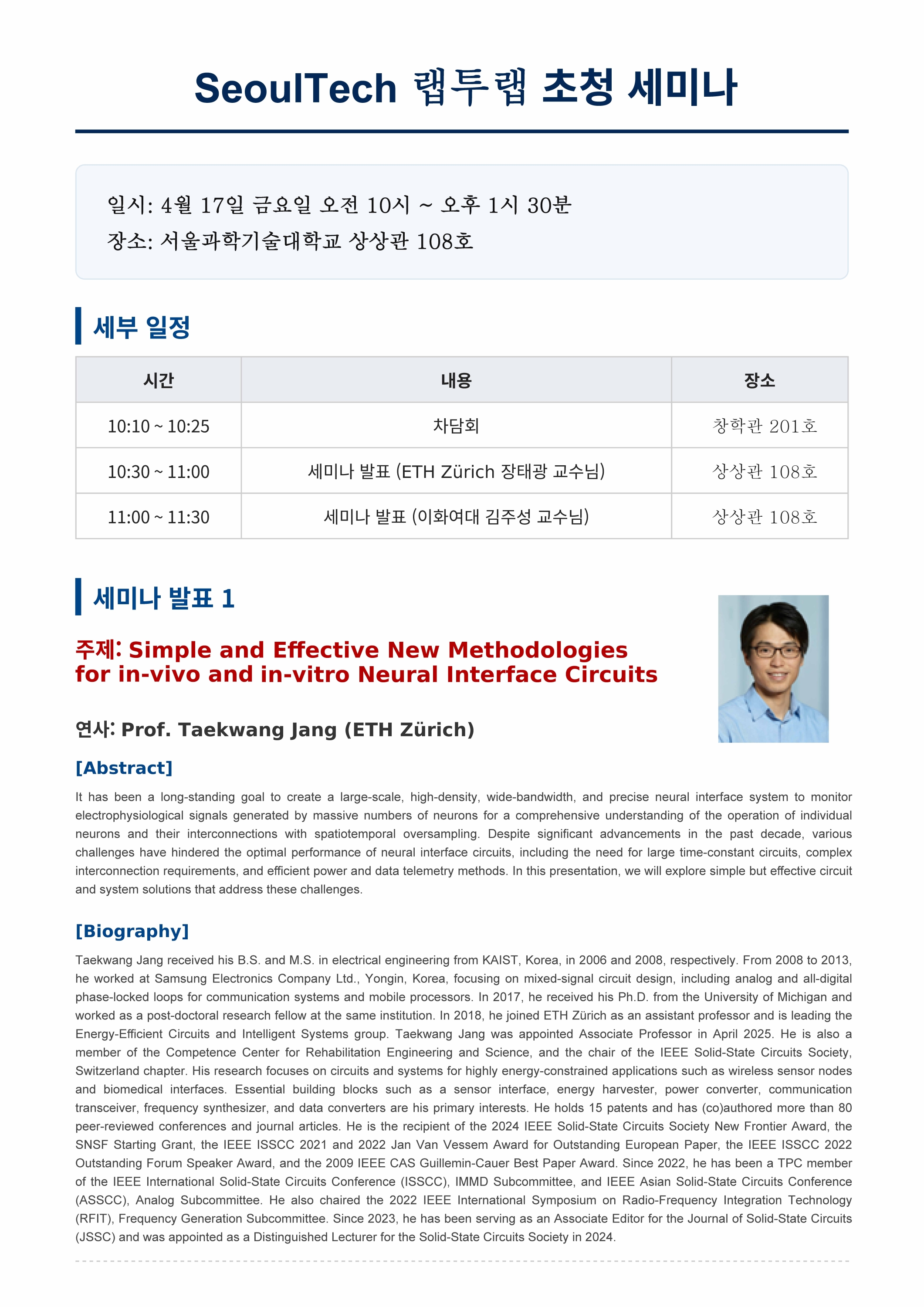 | 제목 | SeoulTech 랩투랩 초청 세미나 안내 | ||||